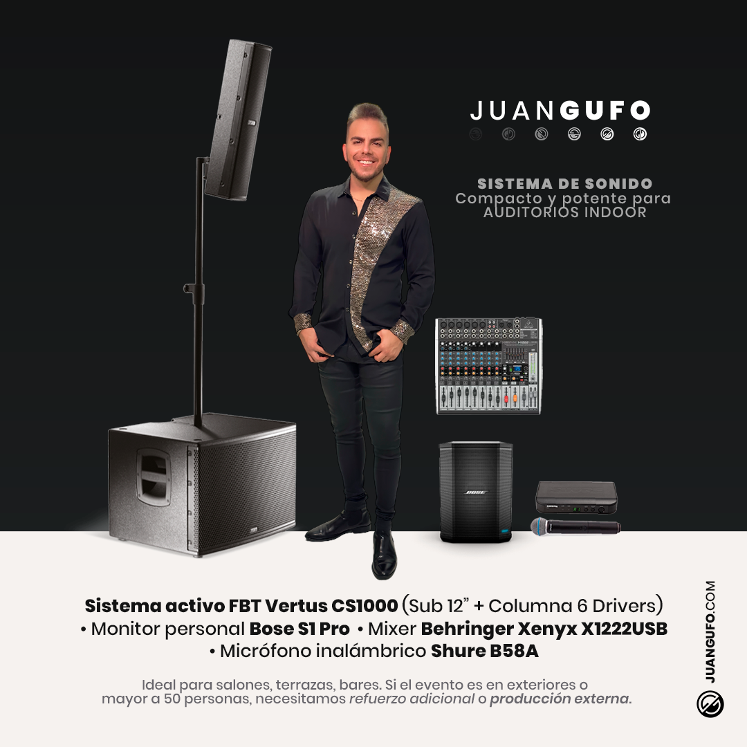 ▶︎ El valor no incluye retenciones ni transporte fuera del casco urbano de Pereira. Puede requerir prueba de sonido antes del evento. Tú suministras la producción de sonido, iluminación y efectos según el espacio y el número de personas: CLIC AQUí Y REVISA LA OPCIÓN B.