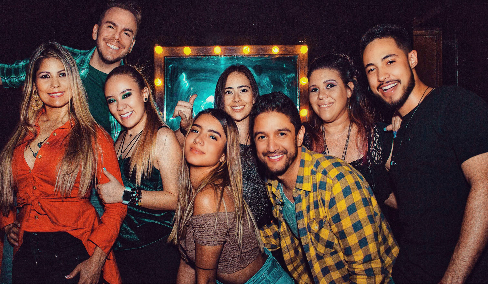 May Vargas, Juan GuFo, Majo Ruíz, Camila Beltrán, Juliana Becano, Ricardo García, Agua Santa y Chucho García (Elenco La Obra)
